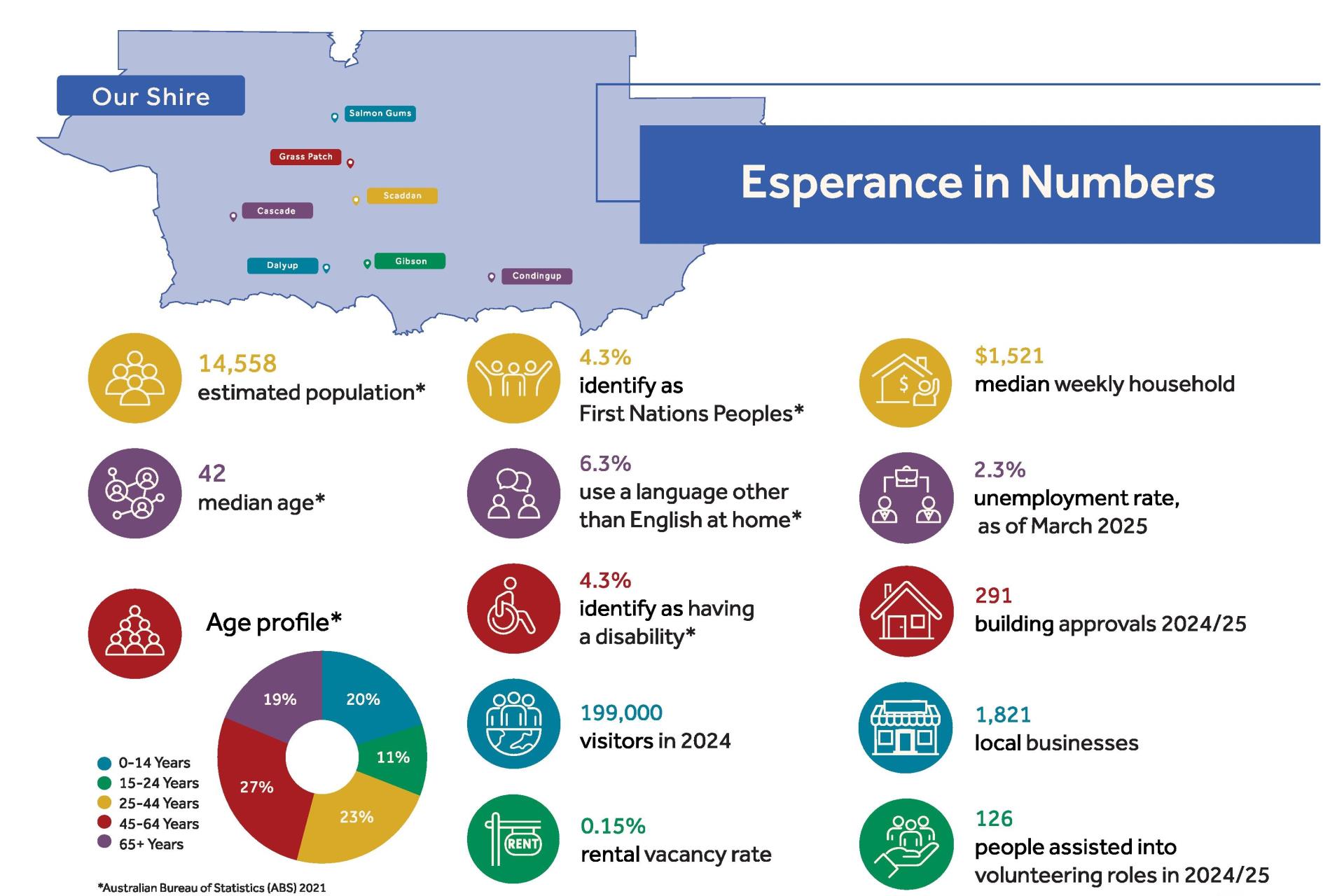Esperance has a strong local economy. In 2023/24, the region’s Gross Regional Product was $1.438 billion. The biggest industries were agriculture, forestry and fishing, followed by health care and social assistance. The 2021 Census reported 6,378 jobs in the area.